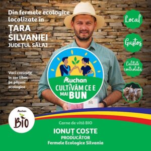 Cea de-a doua gamă votată Produsul Anului 2024 este vita bio, provenită din filiera Auchan, dezvoltată alături de Fermele Ecologice Silvania, din județul Sălaj, o afacere înființată în 2017, din dragoste față de natură și din dorința de a oferi alimente sănătoase. Aici sunt produse alimente bio într-un lanț agroalimentar integrat exclusiv ecologic, de la furcă la furculiță. Gama este formată din produse precum pulpă de mânzat, rasol de mânzat cu os, antricot și vrăbioară de mânzat, cubulețe de carne de vită, pachet pentru ciorbă de vită, coadă și coaste de vită. Produsele din carne de vită bio Auchan sunt românești, proaspete, cu gust natural, savuros. Calitatea superioară se datorează hrănirii animalelor doar cu furaje ecologice și condițiilor de creștere – văcuțelor li se asigură bunăstare în spațiile dedicate din adăposturi și acces la pășune. Procesarea cărnii este atentă cu mediul înconjurător, sustenabilă pentru biodiversitate, fără coloranți și conservanți. Produsele din carne de vită bio Auchan sunt create pentru ca oamenii să fie mai sănătoși, mediul mai curat și natura mai frumoasă.