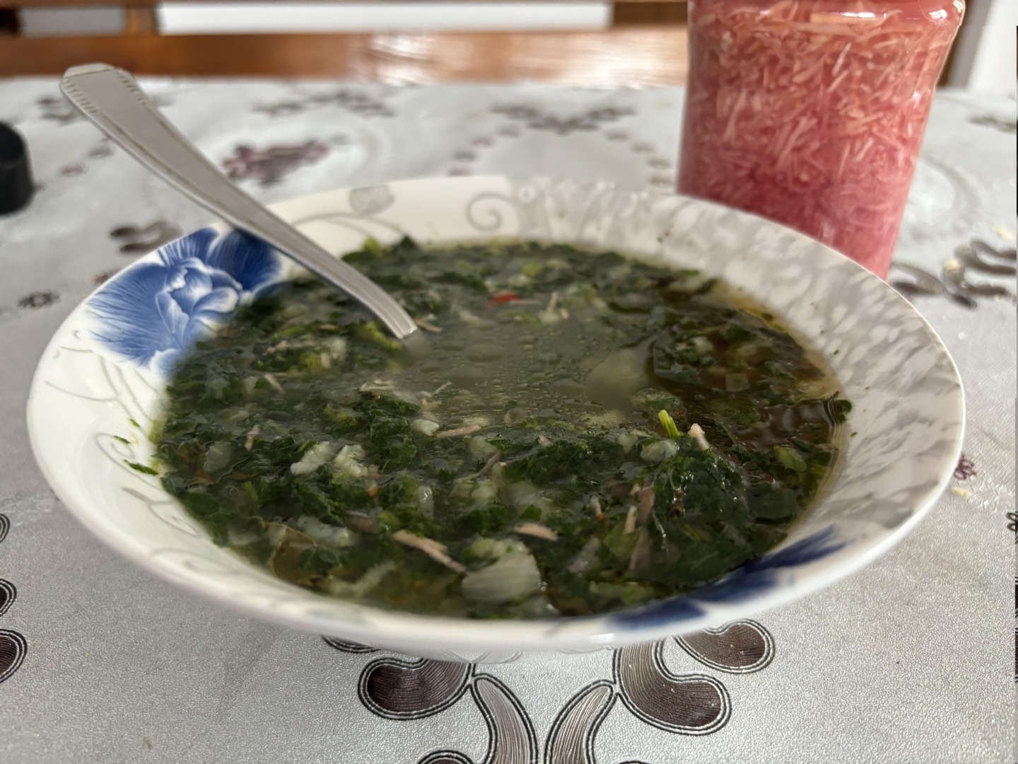 Am degustat lingură cu lingură, savurând aroma de urzică culeasă dintr-o grădină submontană. E un decalaj de cel puțin două săptămâni între București și aceste locuri în ce privește creșterea vegetației. Și, demn de precizat, nici urzicile folosite ca materie primă pentru mâncarea de azi nu au fost chiar de primă generație.