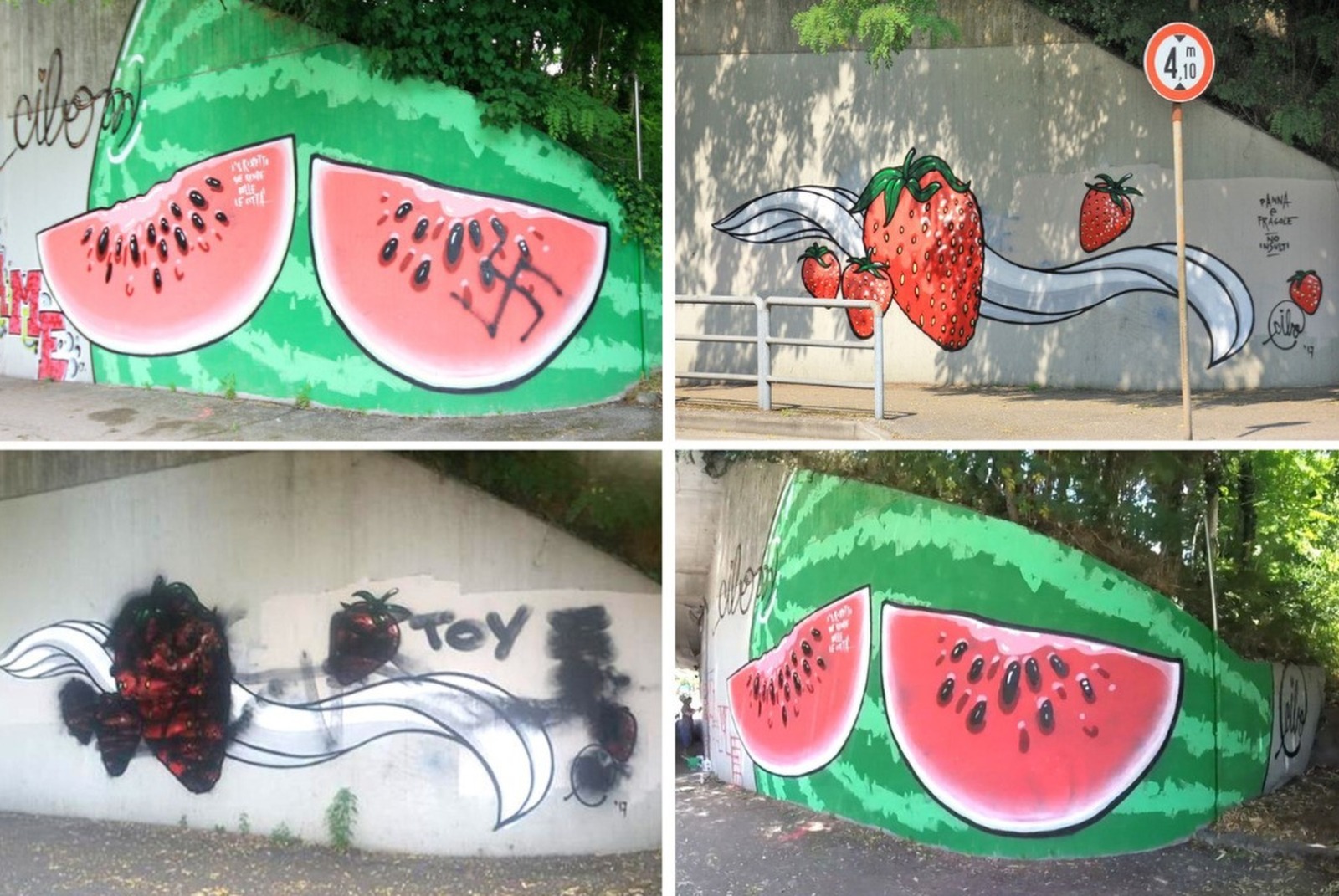 Expoziția prezintă aproximativ 50 de fotografii, care surprind renașterea unor lucrări semnate de CIBO, anterior mutilate de simboluri și mesaje neofasciste. Pe parcursul unei rezidențe artistice de o lună în zona Veronei, artiștii au răspuns cu entuziasm la invitația lui CIBO, restaurând și reimaginând muralele vandalizate și transformând fiecare intervenție într-un mesaj puternic în favoarea drepturilor omului și libertății de exprimare.