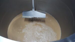 După răcire, braga trece printr-un filtru automat, parte a instalației închise concepute de el. În ultima fază, ajunge într-un cazan mare, unde i se adaugă zahăr. În plus, calitatea produsului este dată și de calitatea ingredientelor folosite: grâu întreg, tărâță și mei, toate ecologice.