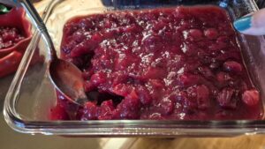 De pildă, celebrul cranberry sauce este nelipsit de la friptura de curcan. Deși am fost puțin suspicioasă față de combinația de friptură cu sosul îndulcit cu sirop de arțar, a trebuit să recunosc că are un gust deosebit, mai ales că merișoarele sunt puțin acrișoare.
