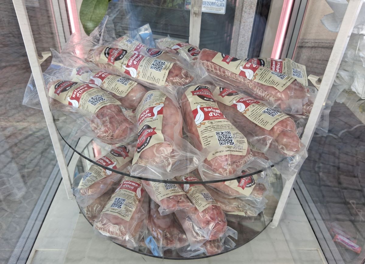Salam de gâscă de Mortara IGP – produsul cel mai cunoscut, din carne de gâscă și de porc, învelit în piele de gâscă.