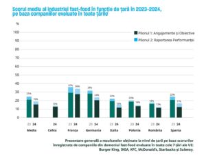 Condițiile de bunăstare ale puilor diferă de la țară la țară. Fast-food-urile din Germania și Franța au obținut cel mai ridicat scor, demonstrând mai multe angajamente asumate și o implementare mai bună. Lanțurile din România obțin cel unul dintre cele mai mici punctaje, confirmând nevoia de a acorda o atenție mai mare acestui subiect.