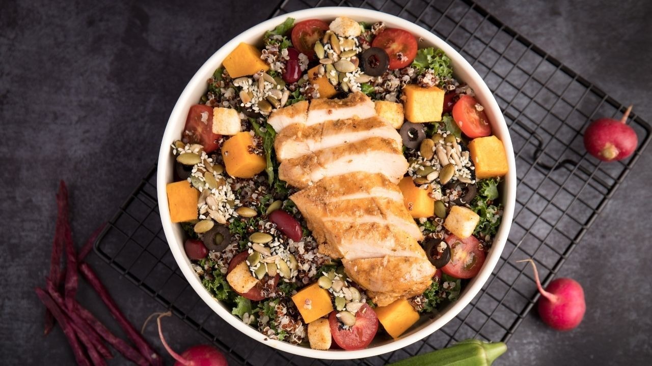 Apoi, pentru cele 30% proteine din meniu, indică tot ea, sunt de preferat cele slabe și ușor de digerat, precum carnea de pui și curcan, pește macrou, ouă, brânza ricotta, brânza de vaci, tofu și tempeh. În timp ce partea de grăsimi nu trebuie să depășească 30%, recomandarea nutriționistei fiind grăsimile sănătoase precum uleiul de măsline extravirgin, fructele oleaginoase în cantități mici, avocado, semințele oleaginoase, în special cele de chia, in, susan și floarea-soarelui.