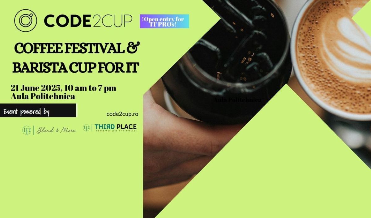 Sâmbătă, 21 iunie, între orele 10:00 și 19:00, Aula Universității Politehnica din București (Splaiul Independenței 313) găzduiește Code2Cup Summer Fest – Festival de Cafea și Cupa Barista în IT, un eveniment care aduce împreună pasionații de tehnologie și cultura cafelei de specialitate, anunță într-un comunicat de presă organizatorii evenimentului.