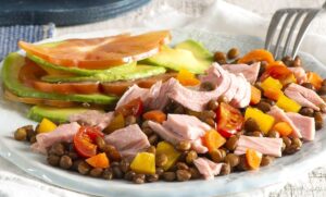 Salata de ton cu linte, avocado și roșii