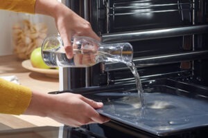 Pentru curățenia de zi cu zi, funcția AquaClean este ideală. Aceasta folosește aburul pentru a înmuia murdăria și grăsimea, facilitând ștergerea ușoară după fiecare utilizare. În plus, ușa de sticlă detașabilă adaugă un plus de confort – panourile din sticlă pot fi îndepărtate rapid, ceea ce îți oferă acces facil la întreaga suprafață a ușii și asigură o vizibilitate excelentă în interiorul cuptorului, chiar și în timpul coacerii.