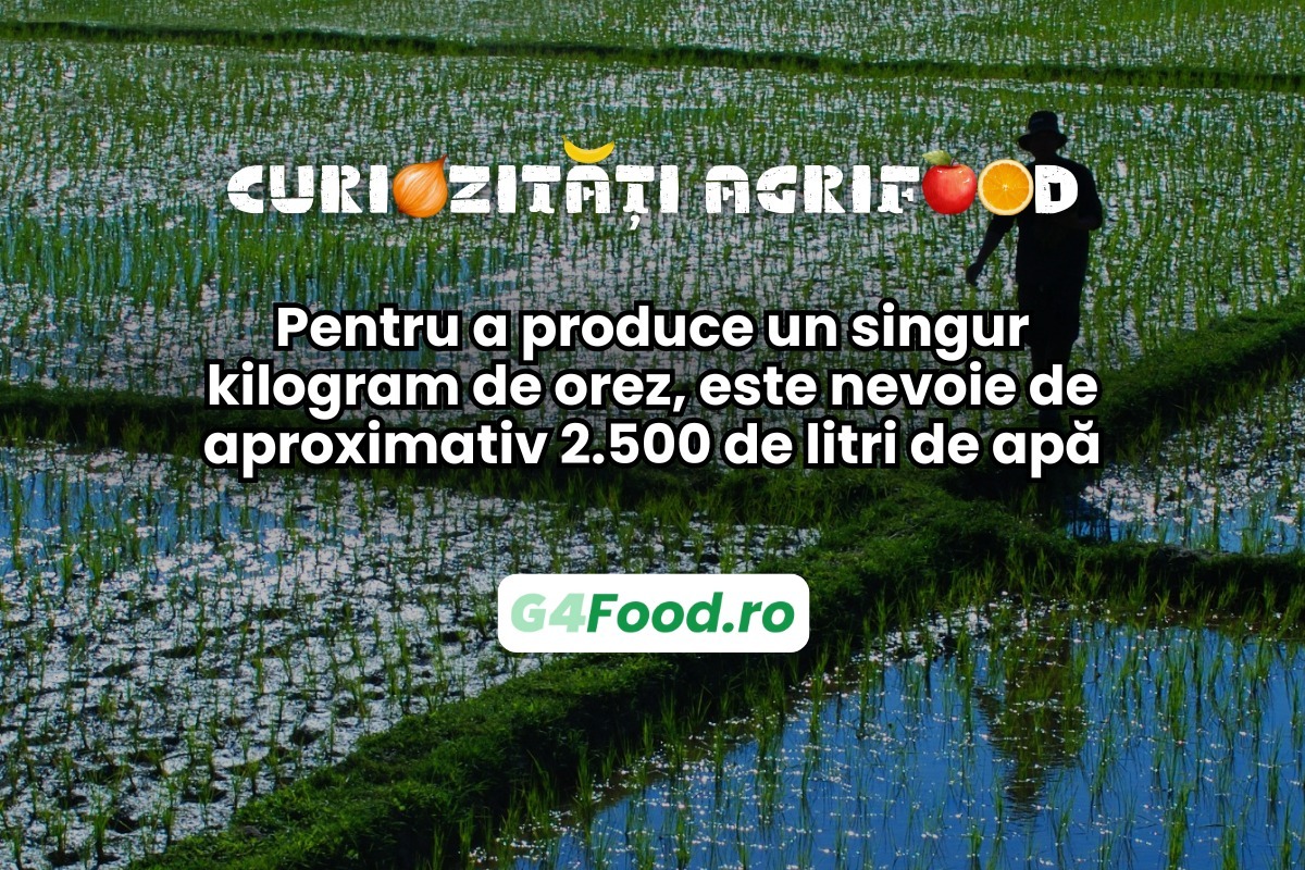 - Pentru un singur kilogram de orez alb, este nevoie, în medie, de 2.500 litri de apă.