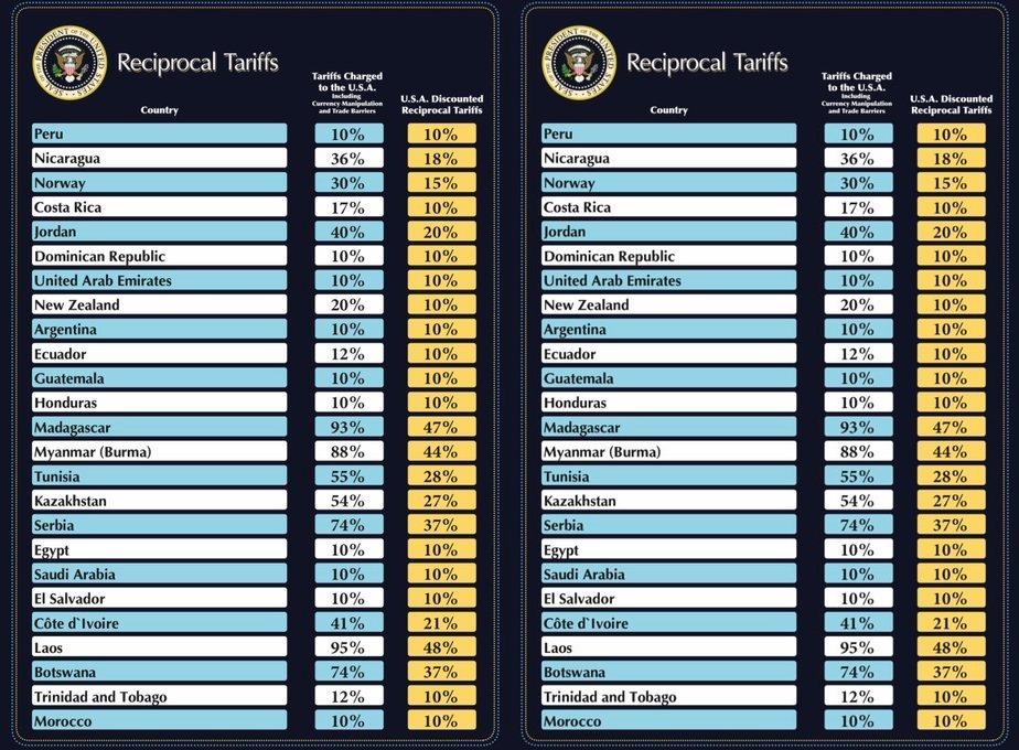 Președintele american Donald Trump a anunțat miercuri că impune taxe vamale pentru toate statele lumii, cu o „taxă vamală de bază minimă” de 10%, începând din 5 aprilie. Totuși, pentru unele state, taxele vamale vor fi mai mari și vor intra în vigoare pe 9 aprilie. De exemplu, pentru UE taxele vamale vor fi de 20%. În plus, Trump a anunțat taxe vamale de 25% pentru toate automobilele produse în afara SUA.