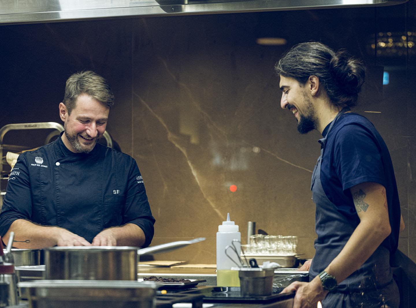 „Eu n-am făcut bucătărie românească decât din 2015. Un declic important a fost când am fost plecat foarte mult din țară și tot ce îmi doream să mănânc era bucătărie românească. Plângeam după o ciorbă! Eram în America de Sud, nu mai mâncasem mâncare românească de 9 luni – și nici nu aveam cum să recreez o ciorbă acolo. Mi-am dat seama atunci că mâncarea românească face parte din mine și că pe viitor asta aș putea să exprim cel mai bine din perspectiva unui bucătar care are un stil al său. Tot ce am trăit mai apoi n-a făcut decât să îmi releve faptul că în România poți avea toate premisele unei bucătării pe care să o prezinți la nivel internațional fără să te strofoci”, ridică Alex standardul la nivelul norilor din sala vecină.
