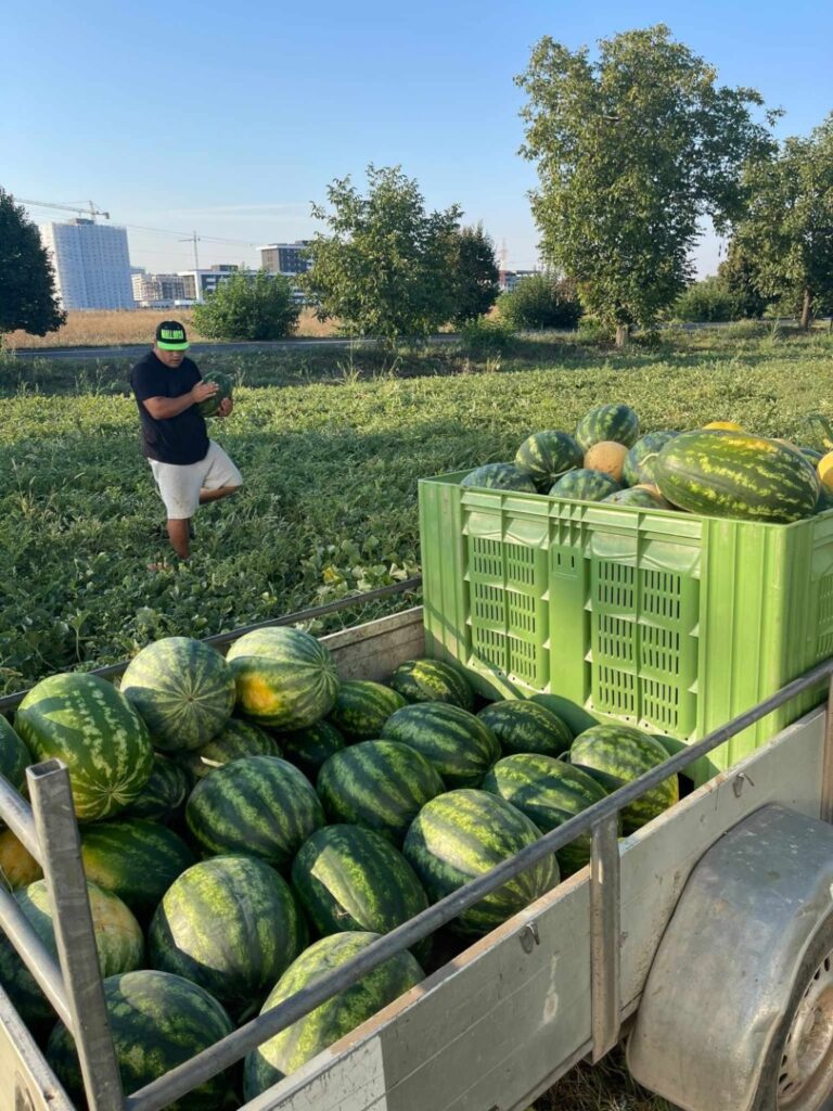 Din fericire, unul dintre agricultorii din Gottlob a început în 2023 un experiment de cultivare a lubeniței la Timișoara, pe un teren al Universității de Științele Vieții „Regele Mihai I al României”, situat la marginea orașului. Al doilea an de cultivare pe acest teren timișorean a fost, de asemenea, un succes. Aici, sezonul a început mai târziu, iar fructele zemoase au fost încărcate în camionete și transportate la Gottlob.