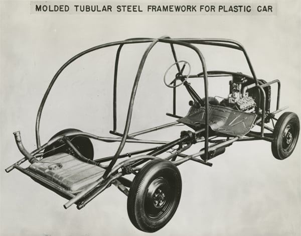 Cadrul, realizat din oțel tubular, avea atașate 14 panouri din plastic. Mașina cântărea 907 kg, fiind cu aproximativ 453 kg mai ușoară decât o mașină din oțel. Ingredientele exacte ale panourilor din plastic sunt necunoscute deoarece nu există nicio înregistrare a formulei în prezent. Un articol susține că au fost fabricate dintr-o formulă chimică care, printre multe alte ingrediente, includea soia, grâu, cânepă, in și urzică chinezească. Un om care a contribuit la crearea mașinii, Lowell E. Overly, susține că a fost folosită „…fibră de soia într-o rășină fenolică cu formaldehidă folosită la impregnare”.