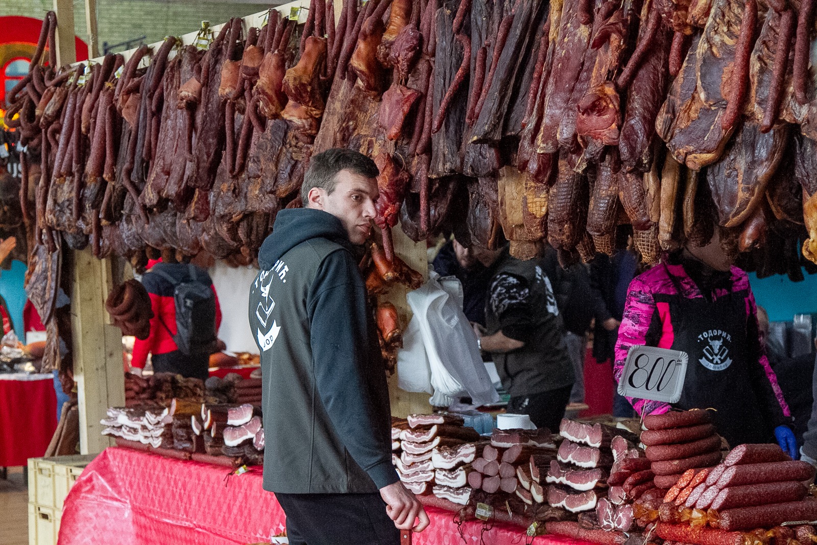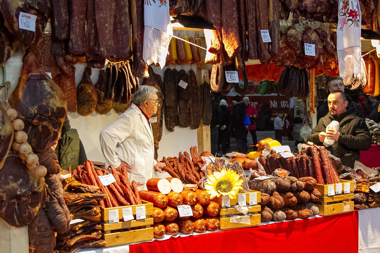 Prețurile din acest an au fost mai mari decât în anii trecuți, însă sârbii știu să își vândă marfa, oferind opțiuni pentru toate buzunarele. Kilogramul de jumări, slănină sau șuncă costă între 10 și 17 euro. Cârnații uscați au prețuri între opt și 15 euro pe kilogram, iar salamul se vinde între 12 și 20 de euro. Jumările sunt pe categorii, costă între opt și 12 euro.