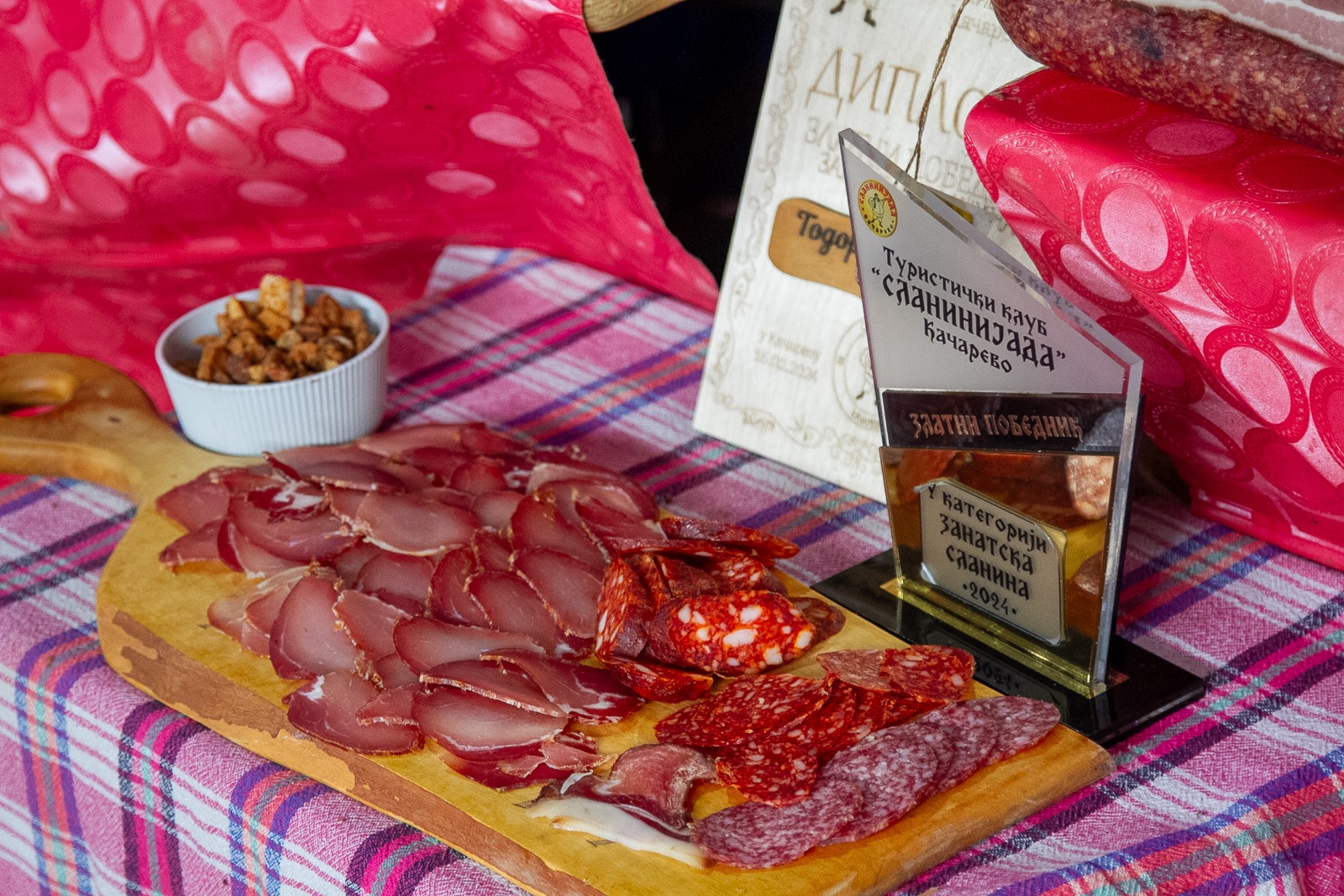 „Trailere, furgonete și mașini au fost încărcate cu peste 100 de tone de slănină și 400 de tone de produse tradiționale sârbești, precum cârnați afumați, jamboane maturate, afumături, jumări, tobă și boia, aduse de micii și marii producători din toate regiunile Serbiei”, a declarat Ramona Rista, diplomat culinar.