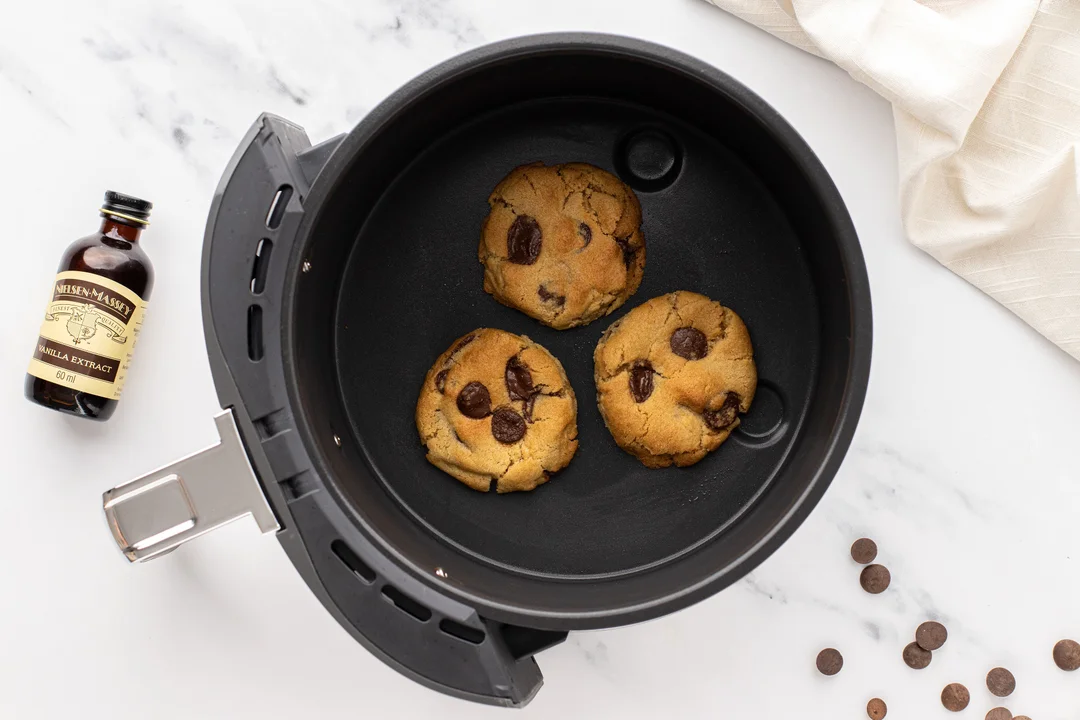 Se coc la la 180°C timp de 15 minute sau selectând programul special pentru biscuiți, dacă air fryer-ul este unul mai nou și are un astfel de program.