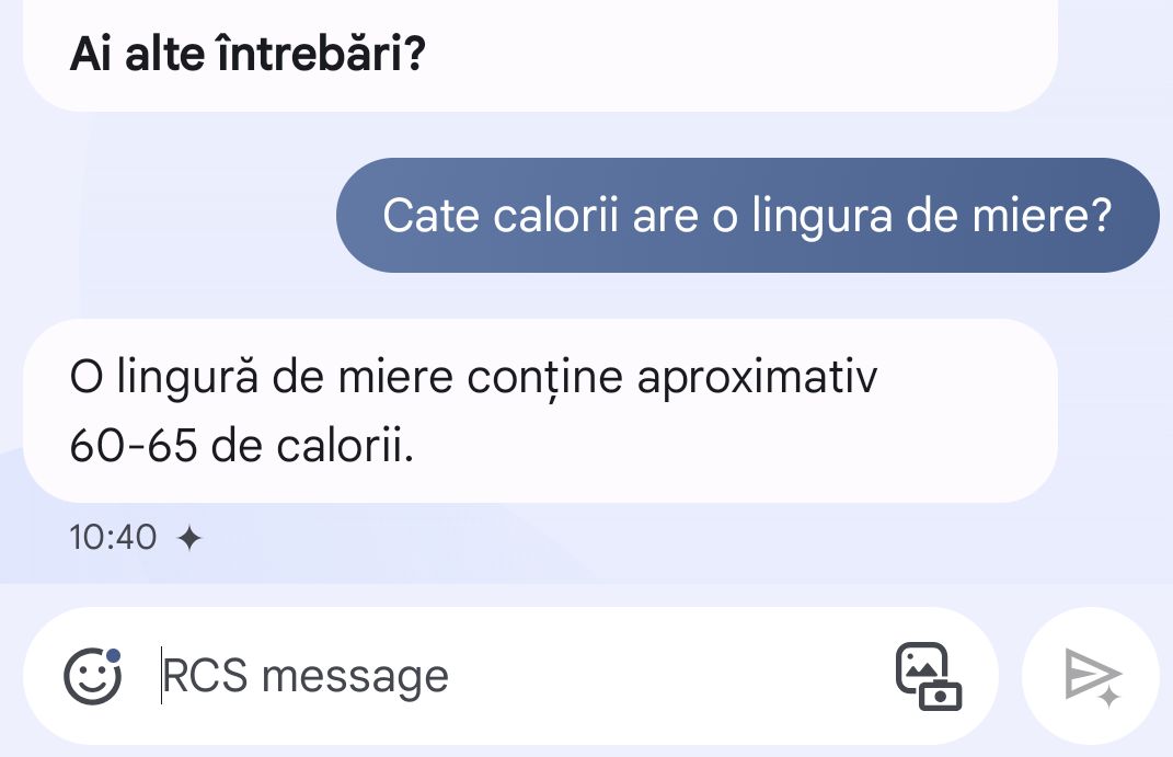 Puteți întreba, de asemenea, câte calorii au anumite alimente, de exemplu, o lingură de miere.