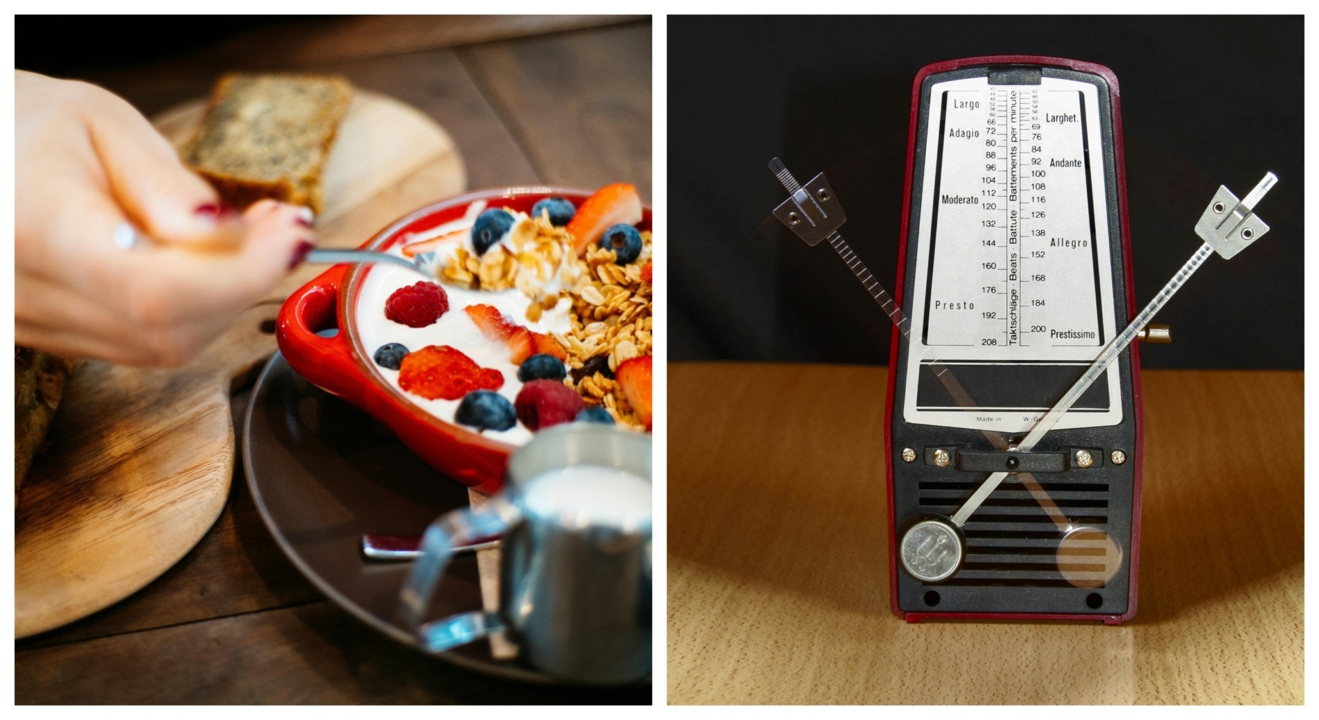 Un nou studiu compară modul în care oamenii mănâncă în două situații distincte: cu și fără un metronom setat la diferite ritmuri.