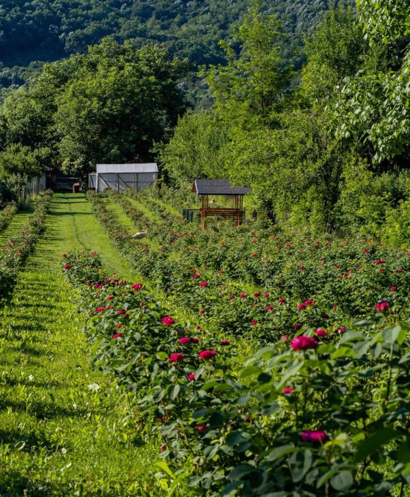Valea Nușcovului, cu dealurile sale subcarpatice și pădurile întinse, este inima Melinis. De aici provin trandafirii de Damasc, gutuile, zmeura și murele. Afinele și merișoarele sălbatice completează paleta de ingrediente, iar mierea ecologică de salcâm și polifloră este baza fiecărui produs.