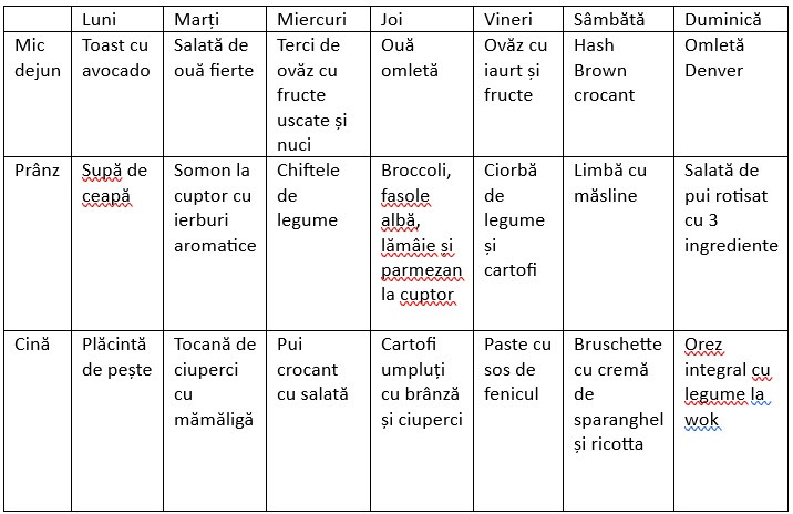 Mai jos aveți meniul pe care vi-l propunem pentru săptămâna 31 martie-6 aprilie.
