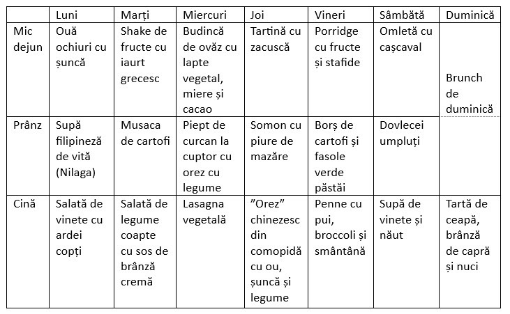 Mai jos aveți meniul pe care vi-l propunem pentru săptămâna 2-8 septembrie.