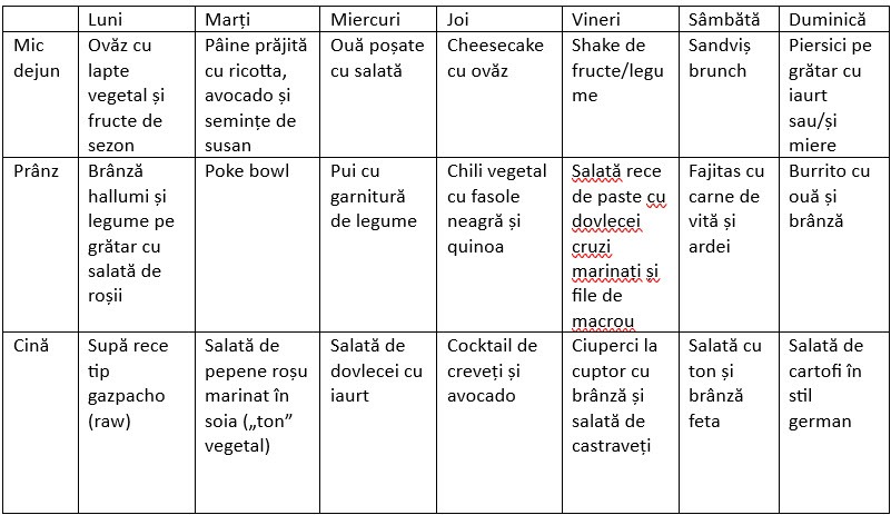 Mai jos aveți meniul pe care vi-l propunem pentru săptămâna 21-27 iulie.