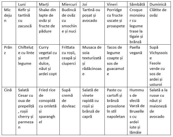Meniul din această săptămână este ovo-lacto vegetarian