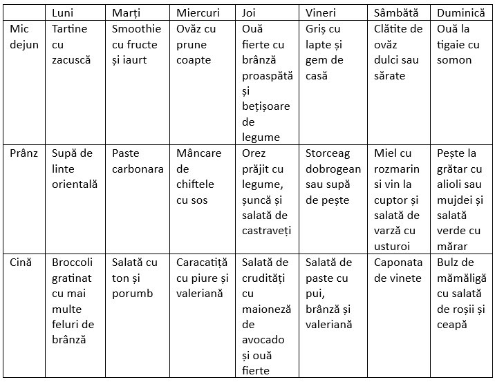 Mai jos aveți meniul pe care vi-l propun pentru săptămâna 5 – 11 august.