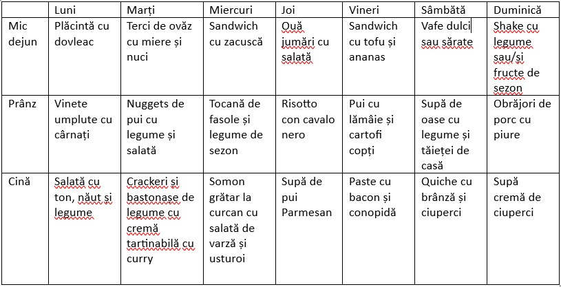 Mai jos aveți meniul pe care vi-l propunem pentru săptămâna 6-12 octombrie.