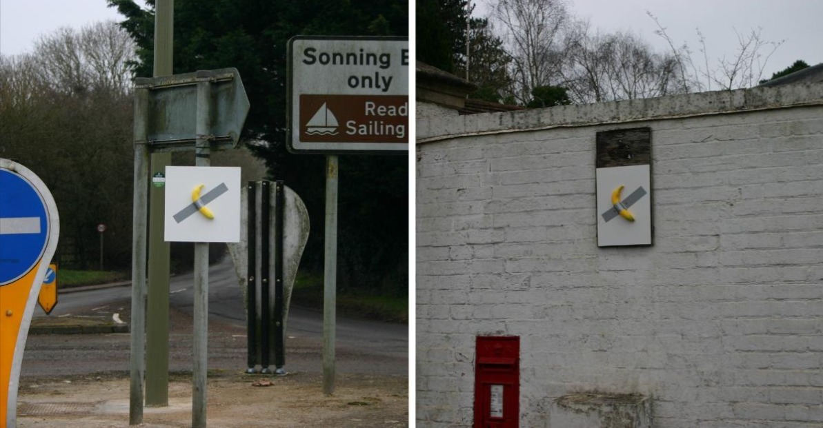 Un artist cunoscut sub numele de Impro a transformat satul Sonning din Berkshire într-o galerie de artă neconvențională, lipind banane cu bandă adezivă pe diverse suprafețe, parodiind celebra lucrare „Comedian” a lui Maurizio Cattelan, vândută pentru 6,2 milioane de dolari (4,9 milioane de lire sterline), scrie The Independent.