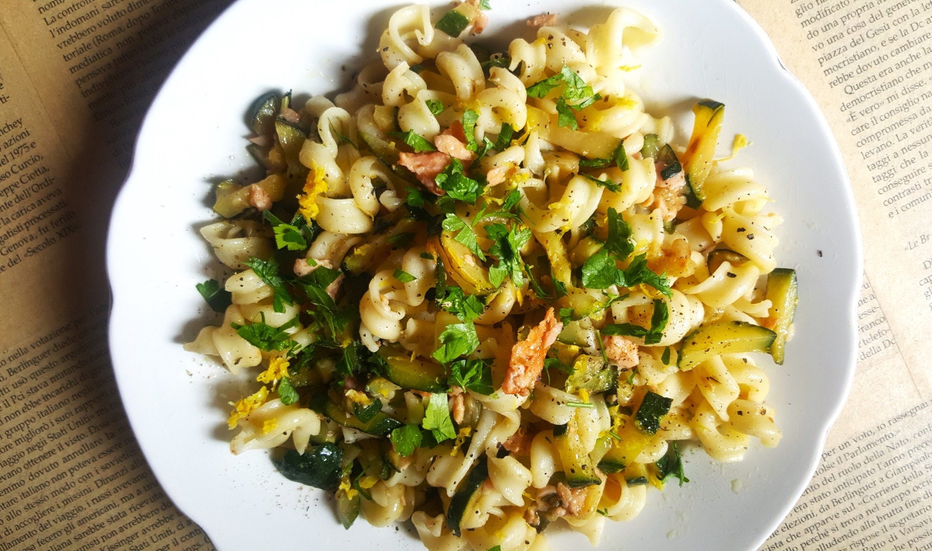 În orice combinație, somonul afumat are nevoie, pentru echilibru, de o parte vegetală și, aproape obligatoriu, lămâie. Fiind o componentă proteică dar și de grăsimi importantă, dacă îi asociem carbohidrați, în cazul nostru paste, pe lângă componenta vegetală care aduce vitamine, săruri minerale, oligoelemente și fibre, avem un fel de mâncare complet. Dacă e și rapid de făcut și ne satisface ca gust, se califică din plin la categoria paste pentru vineri seara, când suntem obosiți și fără energie. Dar și pentru orice prânz sau cină când foamea dă năvală. O altă rețetă de paste super simplă și rapidă.
