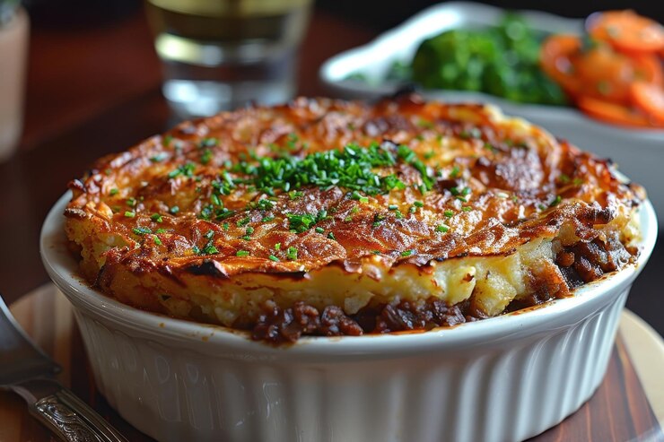 Este o rețetă de tip caserolă / fel unic, intrată în gastronomia internațională care combină rețeta franceză de cartofi alla parmentier (sub formă de piure, nu de supă-cremă) cu ideea de shepperd pie englezească.