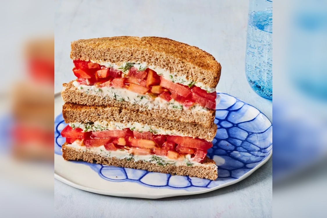 Sendvișul clasic cu roșii prezintă o combinație minunată de roșii dulci și suculente și cremă de brânză cu verdeață. Poți face o cantitate mai mare din amestecul de cremă de brânză și îl poți avea la îndemână pentru a-l întinde pe covrigi sau biscuiți, potrivit EatingWell.