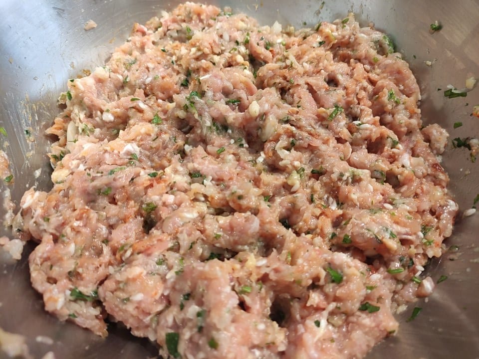 1,5 kg de carne de pui (pulpă dezosată și tocată)