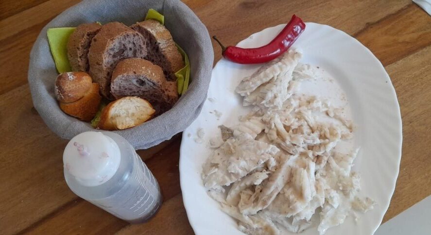 Calcanul merge cel mai bine, în opinia mea, cu salată verde, simplă, cu sare, ulei de măsline, suc de lămâie și mărar proaspăt. Cred că e cea mai bună mâncare din lume.
