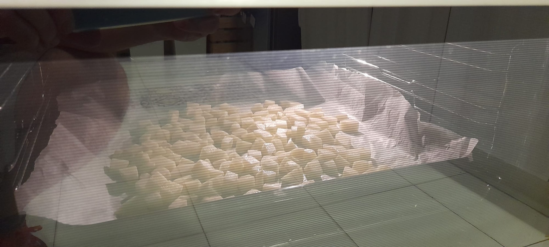 Pentru început se curăță cartofii și se taie în bucățele mici. Se prăjesc în ulei sau, pentru varianta mai dietetică, se coc în cuptor, vezi aici. Se pot face și în airfryer. Când sunt gata, se scurg de surplusul de ulei și se lasă la răcit. Trebuie să fie crocanți în exterior și moi în centru.