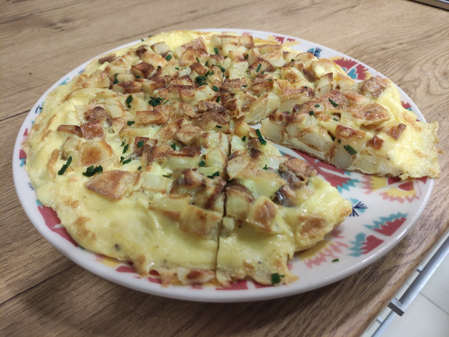 Cum există paellere pentru prepararea orezului, în Spania există și tigăi duble pentru tortilla, eu nu am, așa că am mers pe variata clasică. În cele dedicate e mai ușor de întors. Dacă dorim o omletă mai suculentă o lăsăm jumătate din timpul cât a stat pe prima parte. Dacă o vrem complet gătită, același număr de minute.