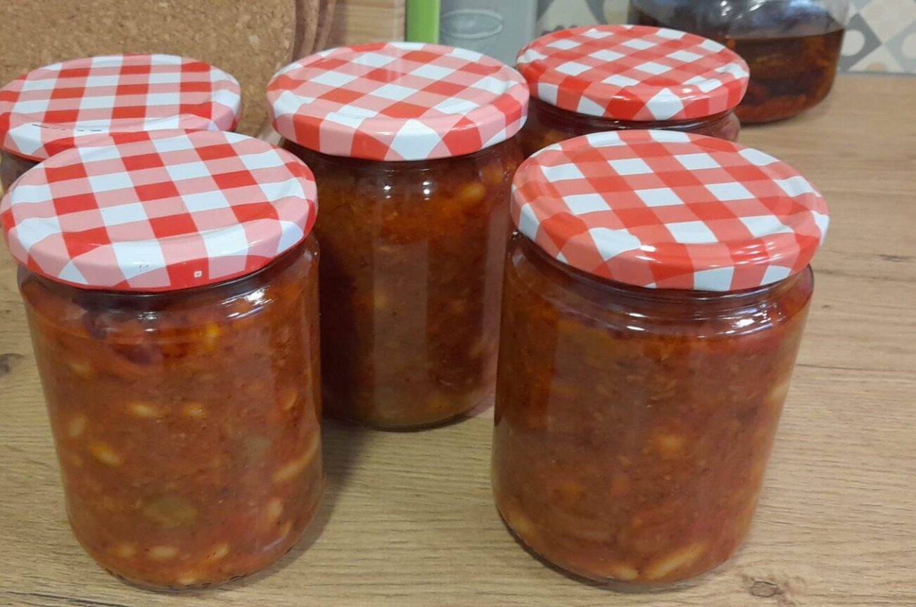 Se fierbe la foc mic, preferabil dacă aveți un inel de fontă, se pune sub oală, așa temperatura va fi constantă pe toată suprafața fundului oalei. Se amestecă din când în când, la intervale din ce în ce mai scurte pe măsură ce scade. După vreo 40 de minute punem și fasolea și mai fierbem 15 minute. Când uleiul s-a ridicat la suprafață, zacusca e gata.