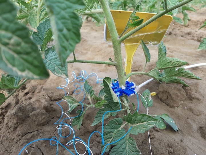 Un senzor montat pe plante anunță când acestora le e sete și au nevoie să bea și eventual să se alimenteze. Un sistem care reduce consumul de apă aproape la jumătate. O chestiune care devine tot mai importantă într-o epocă în care apa începe să fie tot mai puțin disponibilă.