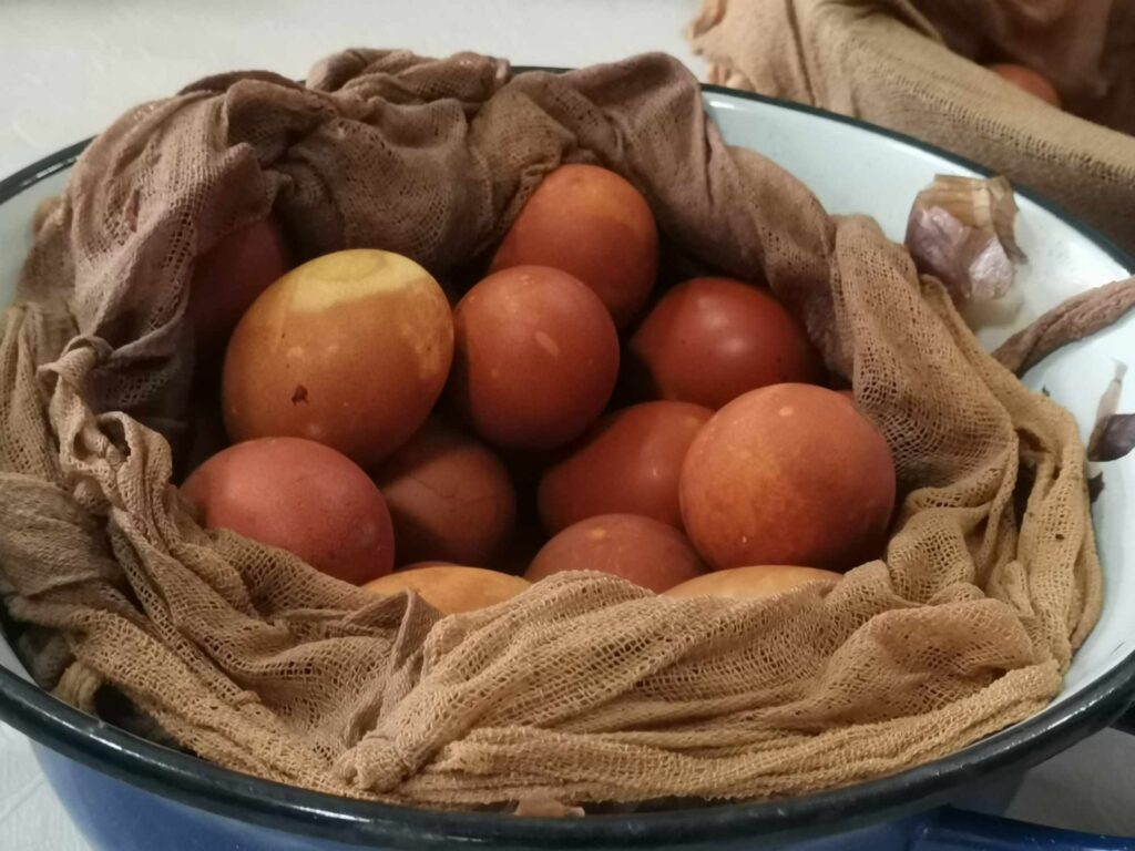 „Astăzi este Vinerea Mare, ultima vineri din Postul Paștelui, cunoscută și sub denumirile de Vinerea Seacă sau Vinerea Neagră. La noi, la mănăstire, e ziua în care vopsim ouăle, așa cum o facem în fiecare an. Folosim doar metode naturale – coji de ceapă roșie și albă – pentru că vopseaua chimică pătrunde prin coajă și nu e sănătoasă. Preferăm simplitatea și naturalețea, chiar dacă nu obținem culori foarte intense. Mai întâi, ouăle se fierb, apoi se spală și se degresează, după care sunt introduse în zeama colorată obținută din coji de ceapă. La final, le dăm cu puțin ulei, pentru a căpăta un luciu frumos”, a explicat maica stareță Casiana.