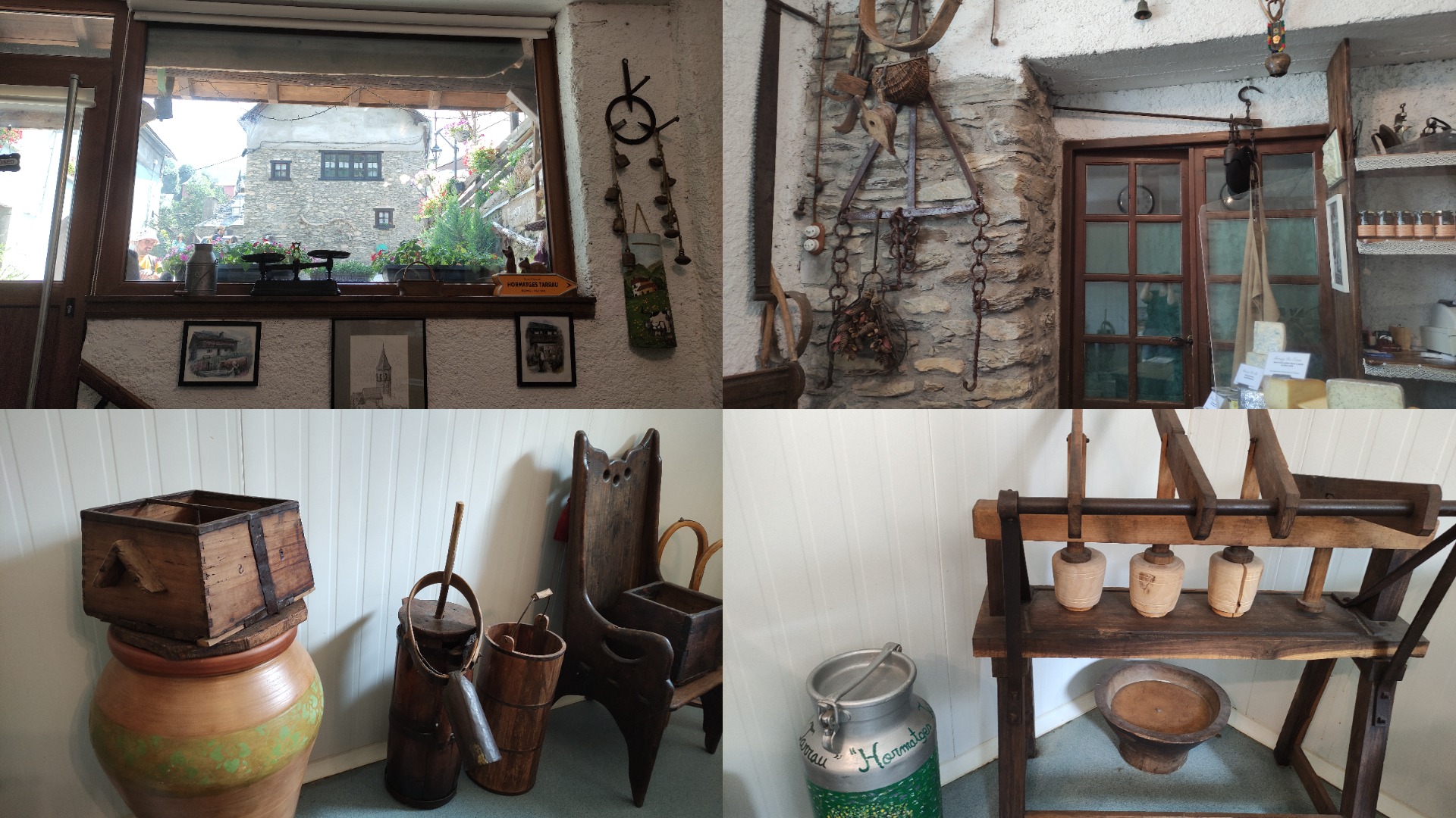 Ca un turist conștiincios am aflat că există în localitate un muzeu cu unelte agricole și o fabrică de brânză, așa că le caut întrebând localnicii. Ajung într-o mică piață (și ea în pantă) unde ar trebui să fie amândouă. Atelierul de brânză are firmă, dar muzeul… nu văd nimic să semene.