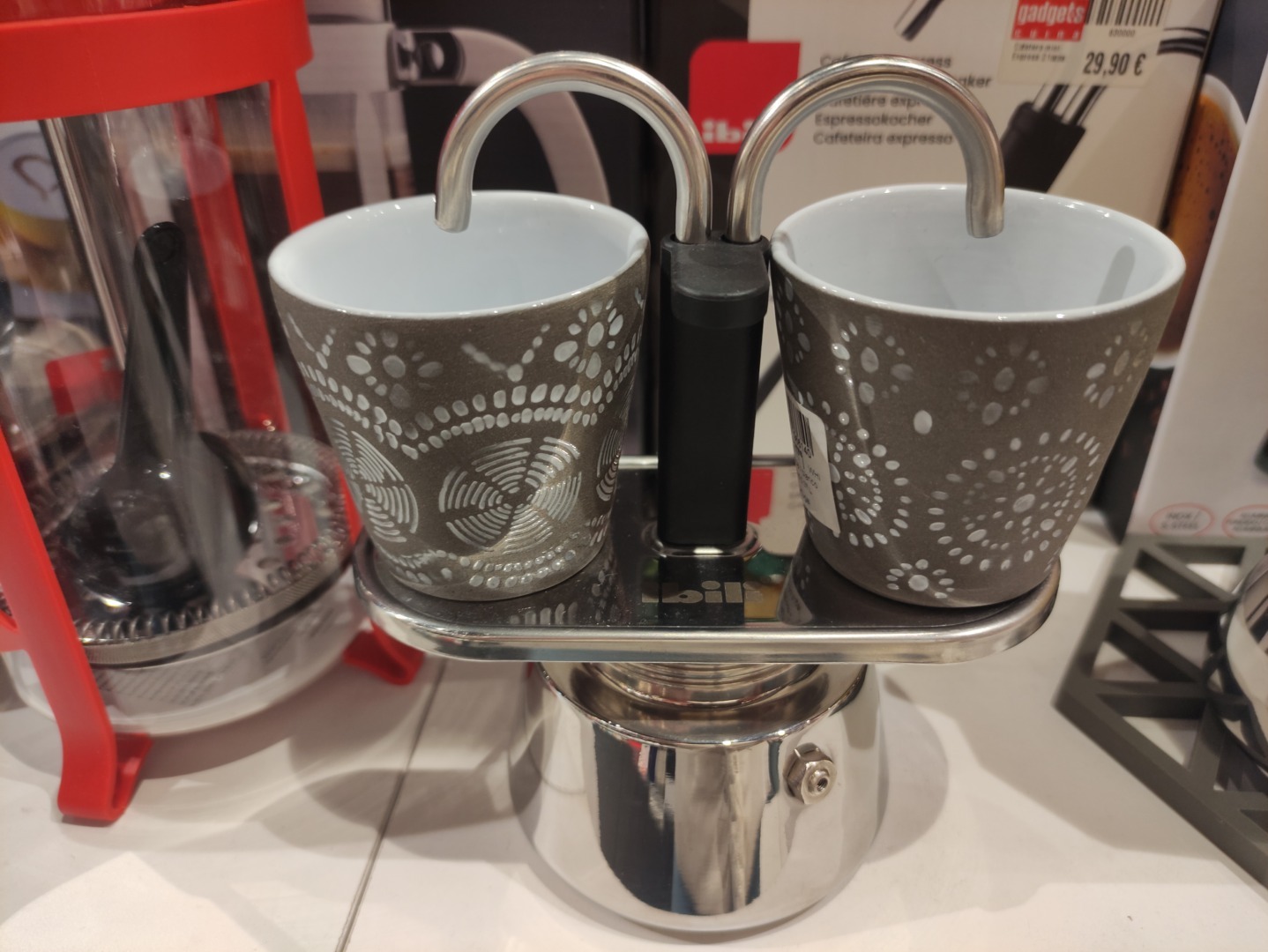 Un magazin mic, dar cu o ofertă variată, include și multe opțiuni pentru producerea și degustarea cafelei. La loc de cinste stau modele variate de espressor italian, varianta care trece aburul prin cafea pe aragaz, fără o mașină profesională sau semiprofesională. Inclusiv un model drăguț, care umple două căni de cafea în același timp.