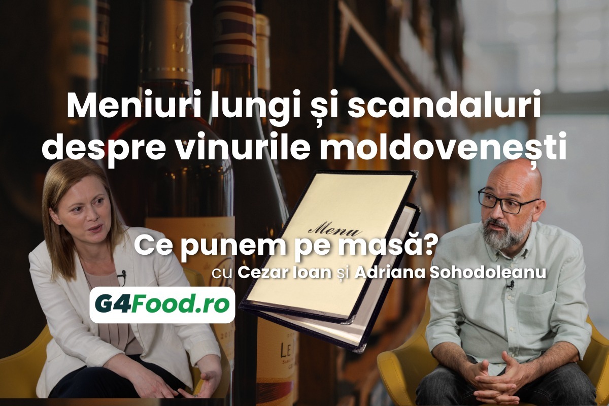 Adriana Sohodoleanu, gastronom, și Cezar Ioan, fondator Vinul.ro, vorbesc, în al treilea episod al producției „Ce punem pe masă? Puțin din toate”, despre meniurile lungi și scandalurile în care au fost implicate vinurile din Republica Moldova.