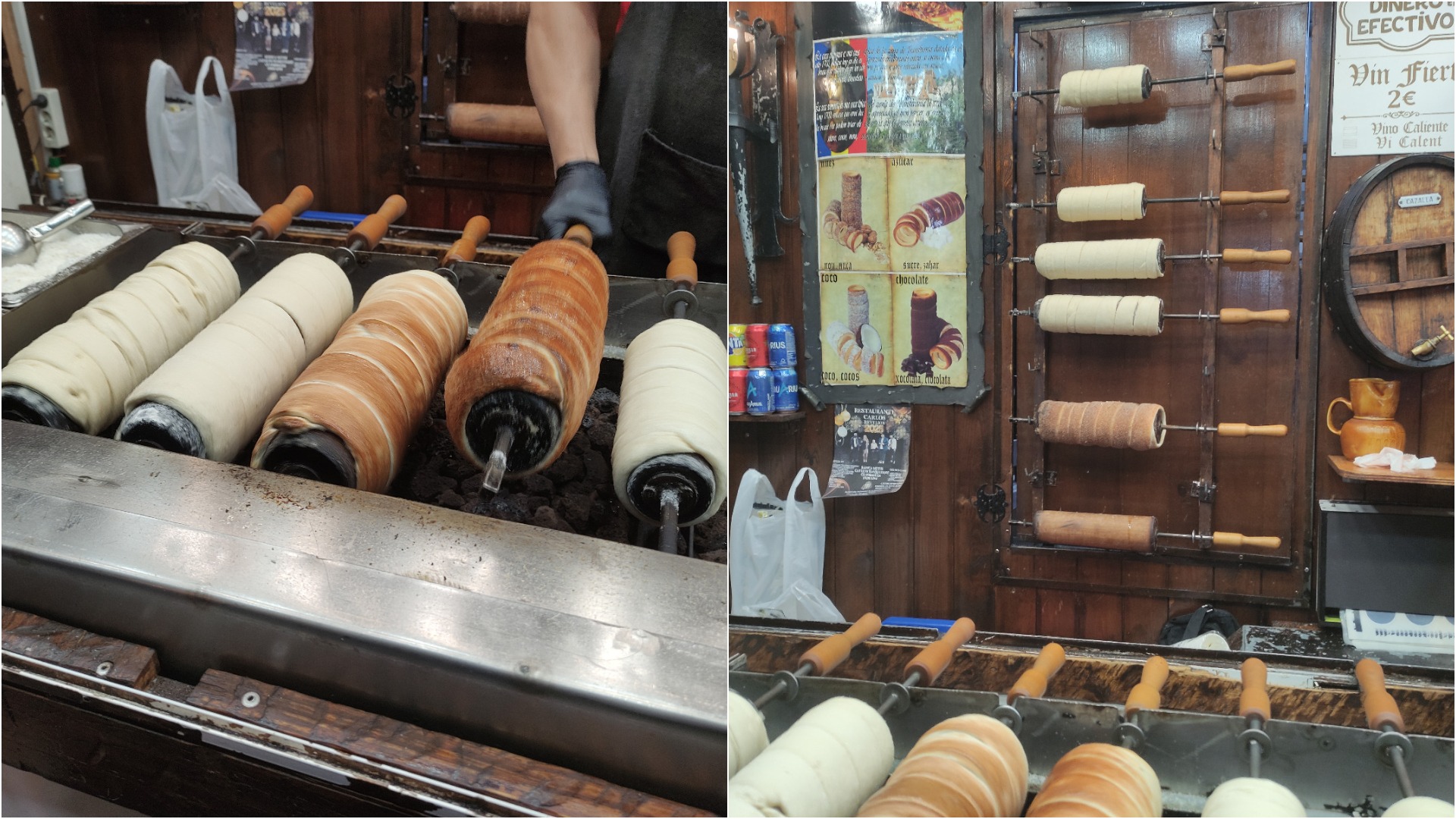 Cât timp aștept să se coacă kurtocsii pe care i-am comandat, o spaniolă cere un pahar de vin fiert. „E foarte bun”, o încurajez. „Vreau să probez, mi se pare interesant”. Îi recomand și pălinca pe care Mădălin o aduce din România. Râde și spune că o să le încerce pe toate.