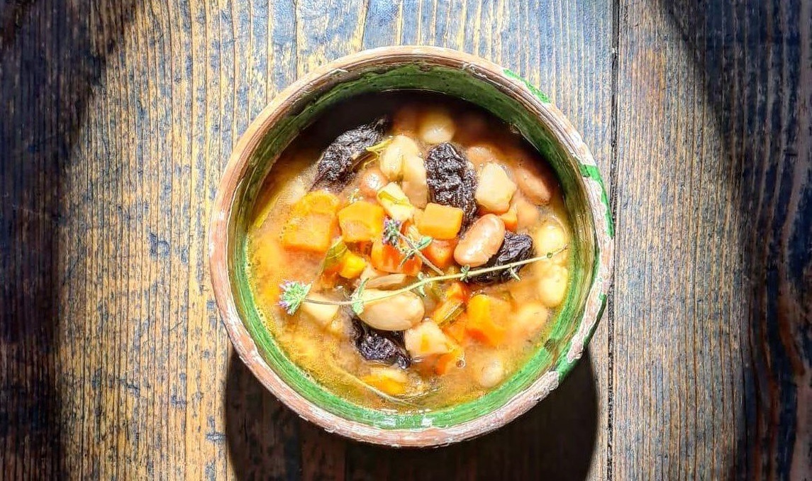 Această „zamă de fasole” se găsește în meniul restaurantului din Viscri.